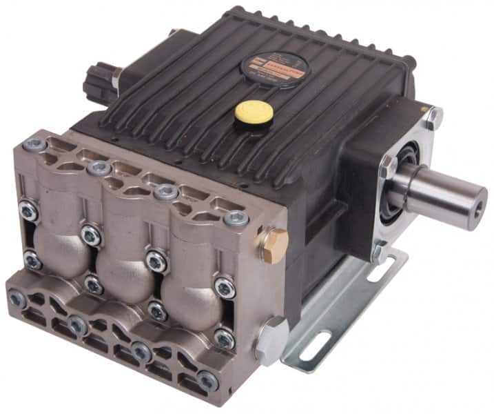 Interpump T44 pump high pressure T69 series 550 or 650 RPM with a 1″3/8 PTO male shaft on the left hand side and 35mm male shaft on the right hand side for a range of industrial cleaning applications. 50 Bar / 725 PSI @ 40 or 50 LPM.